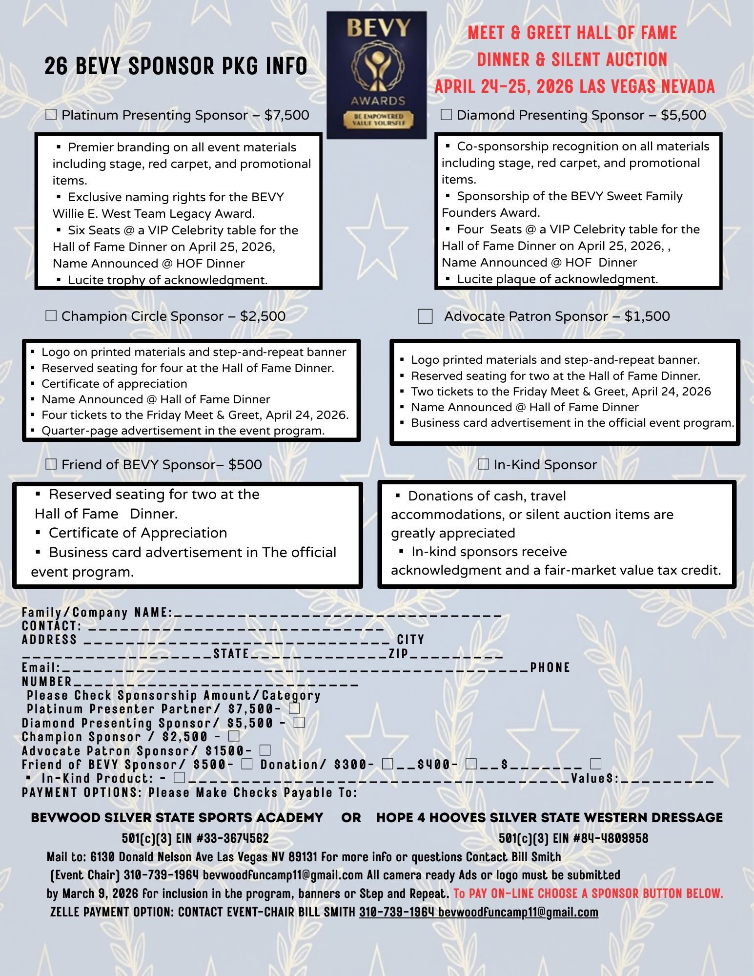 • 2026 BEVY Sponsor Packages