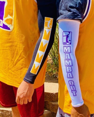 Color/Description: White spandex arm sleeve with 1-color KBA-“Mamba Out”