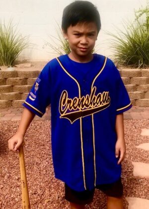 Baseball Jersey (100% polyester) with *2-Color Tackle twill Crenshaw swoosh logo on front, 4×4