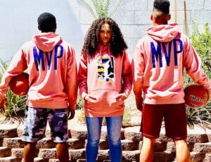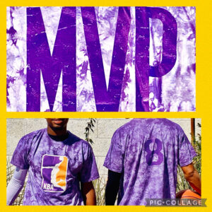 front of T (purple, gold & white) on the front of T’s