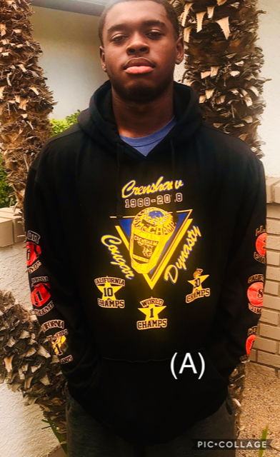 6oz (50/50) Collectable crew sweatshirt featuring Crenshaw’s 41 Championships in basketball, football and track & field from 1968-2018;